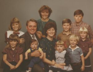 He was elated when Marcia Lindblom agreed to marry him on August 18, 1967, in the Mesa Arizona Temple. Together, they raised nine children: Jenny (Randy) Richardson, Tyler (Tiffini), Trent (Mary Jo), Molly (JR) Wright, Jill (Evan) Jones, Kate (Jay) Arnett, David (Stephanie), Lindsey Sharp, and Mike (Mollie). Dea loved being with his kids and rarely missed an event they were involved in.